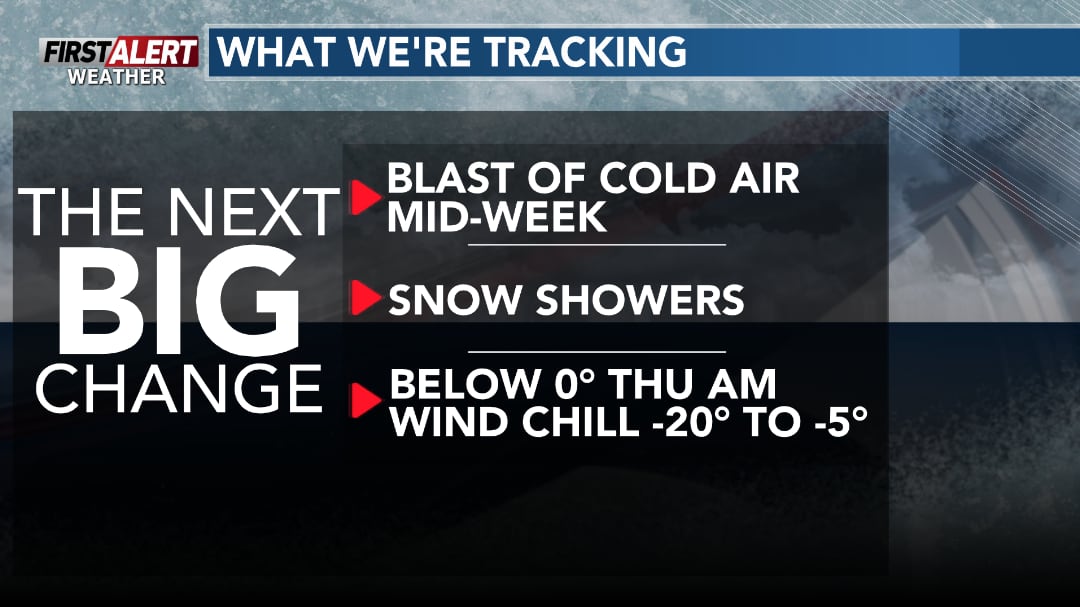 Few snow showers Monday, more snow later this week